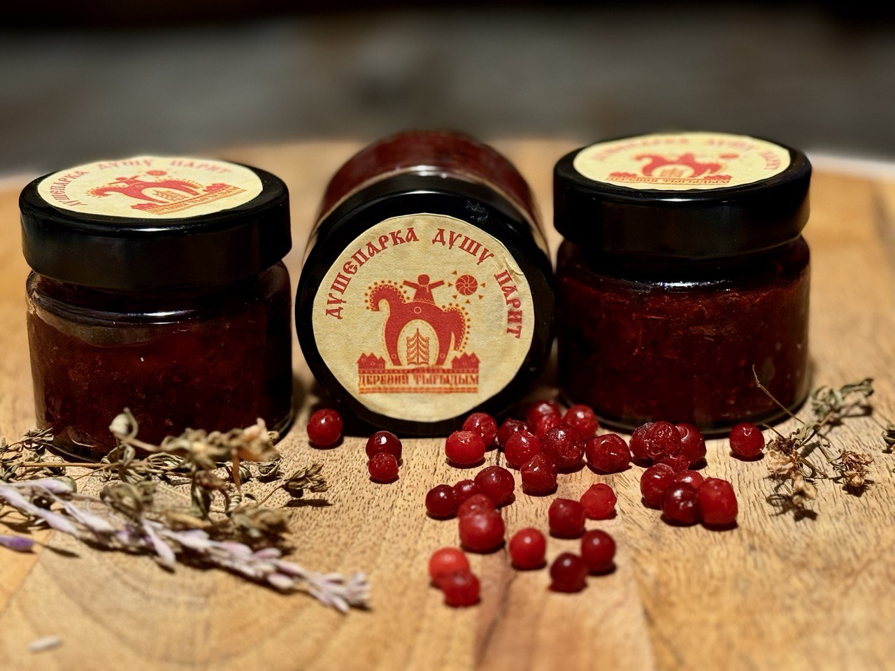Состав: клюква, брусника, 7 трав томлёных в русской печи (иван-чай, таволга, тысячелистник, смородина, зверобой, крапива, садовый бергамот), сахар,